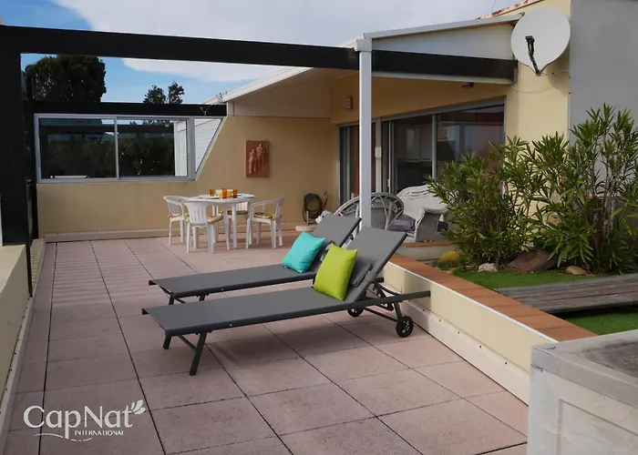 Deze 1-slaapkamer Capnat - Village Naturiste - Port Nature - Villa Malibu Agde ligt op circa 5 minuten te voet van Le Glamour en nodigt gasten uit om te genieten van een terras.